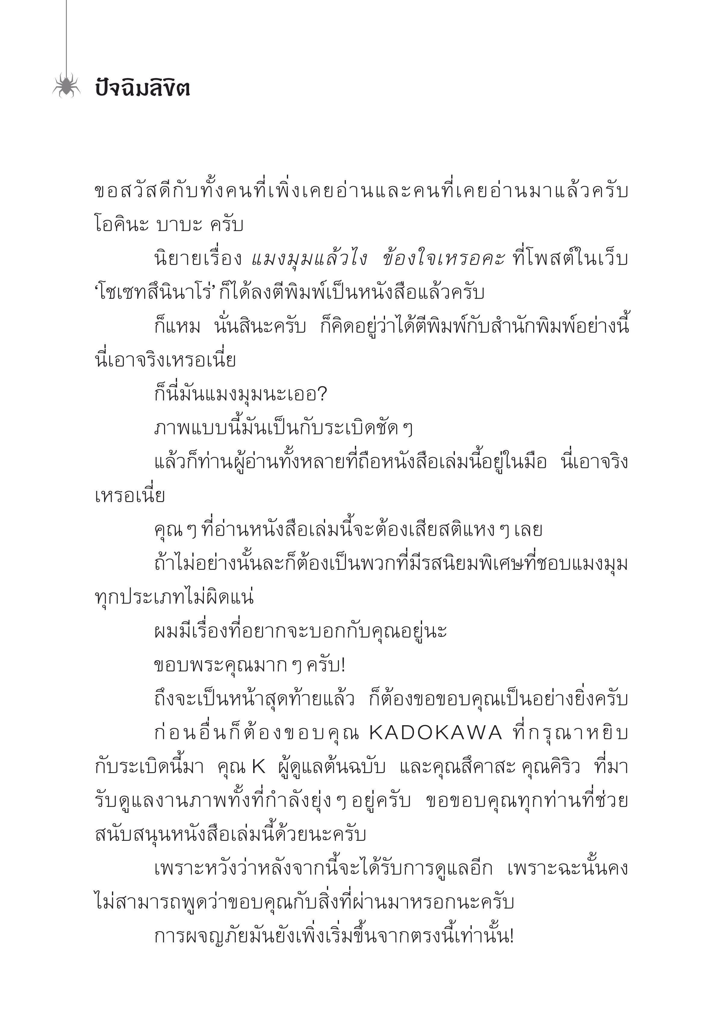 3. นิยาย แมงมุมแล้วไง ข้องใจเหรอคะ