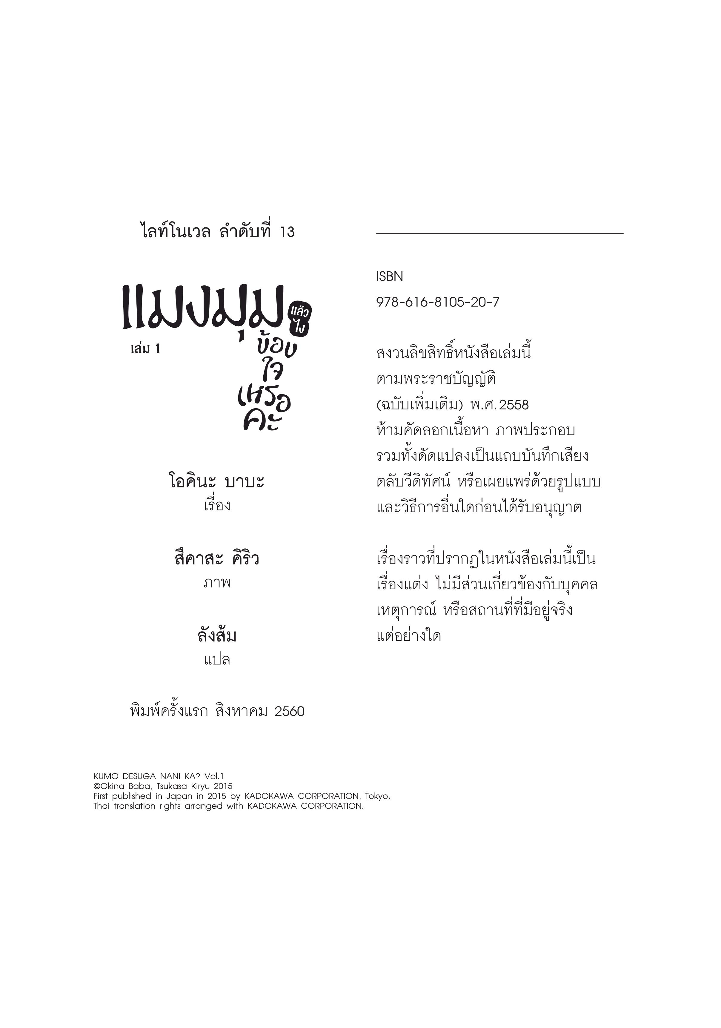 นิยาย แมงมุมแล้วไง ข้องใจเหรอคะ - เล่ม 1.3