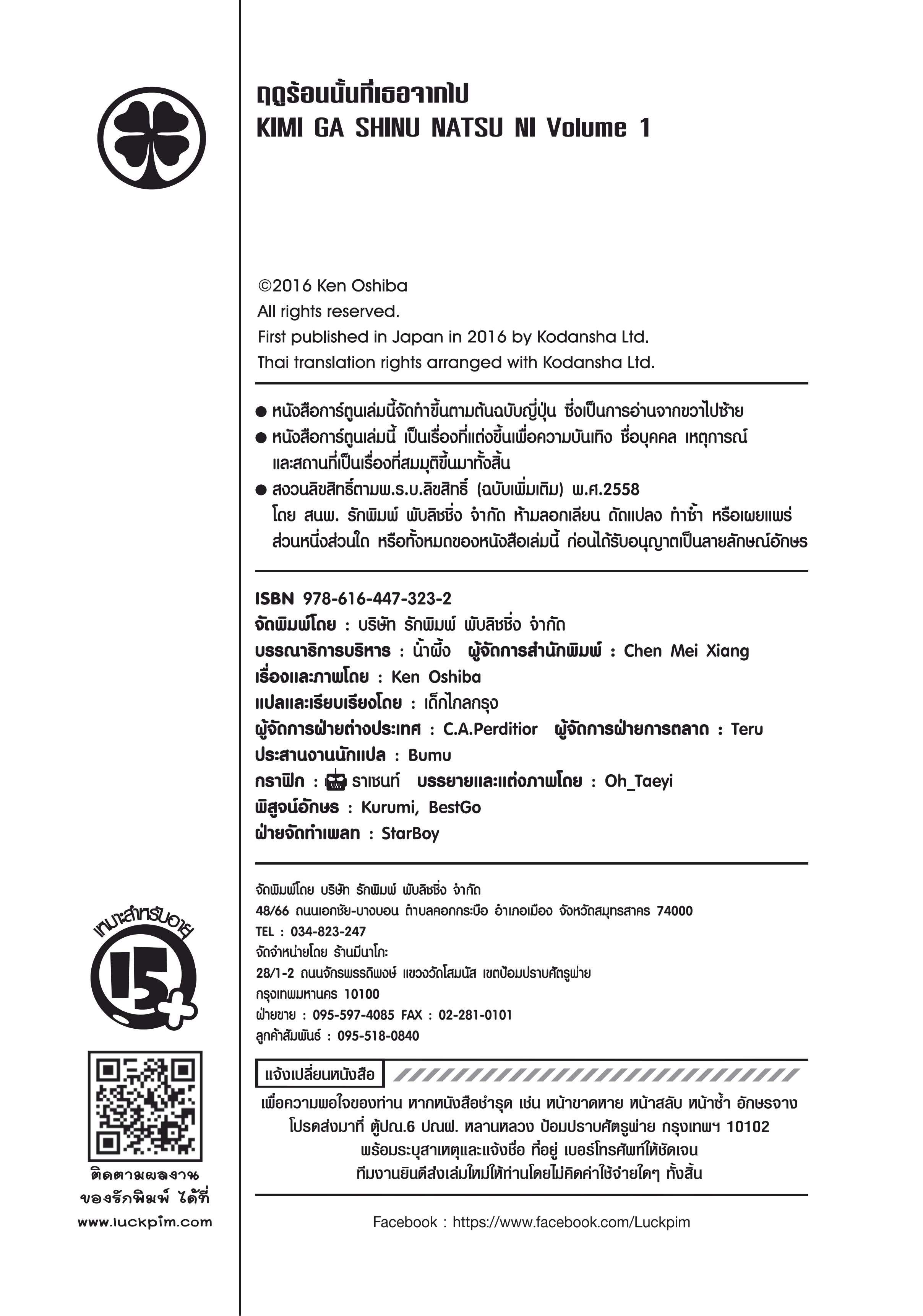 KIMI GA SHINU NATSU NI ฤดูร้อนนั้นที่เธอจากฉันไป - เล่ม 1.3