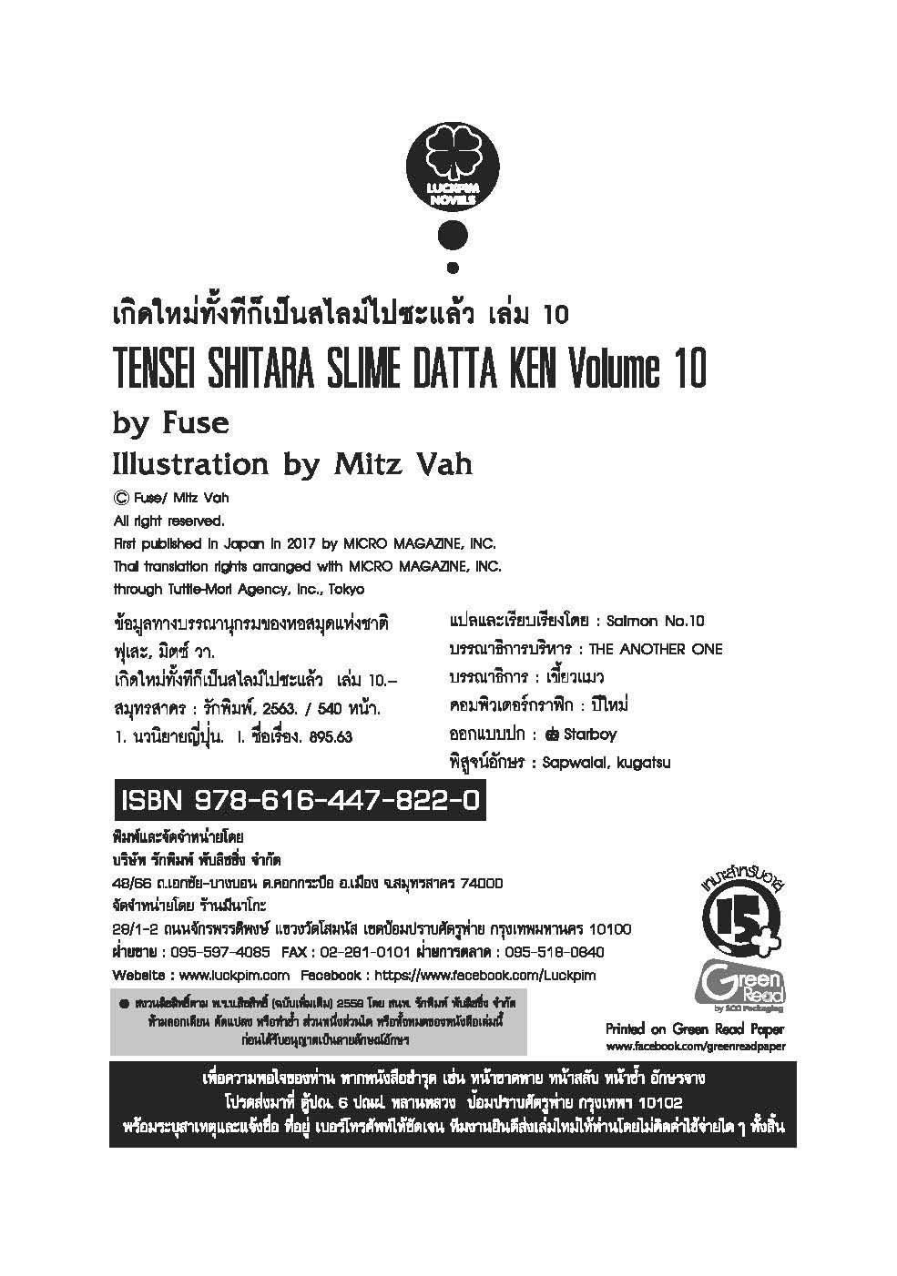 เกิดใหม่ทั้งทีก็เป็นสไลม์ไปซะแล้ว Tensei shitara Slime Datta Ke (ฉบับนิยาย) - เล่ม 10
