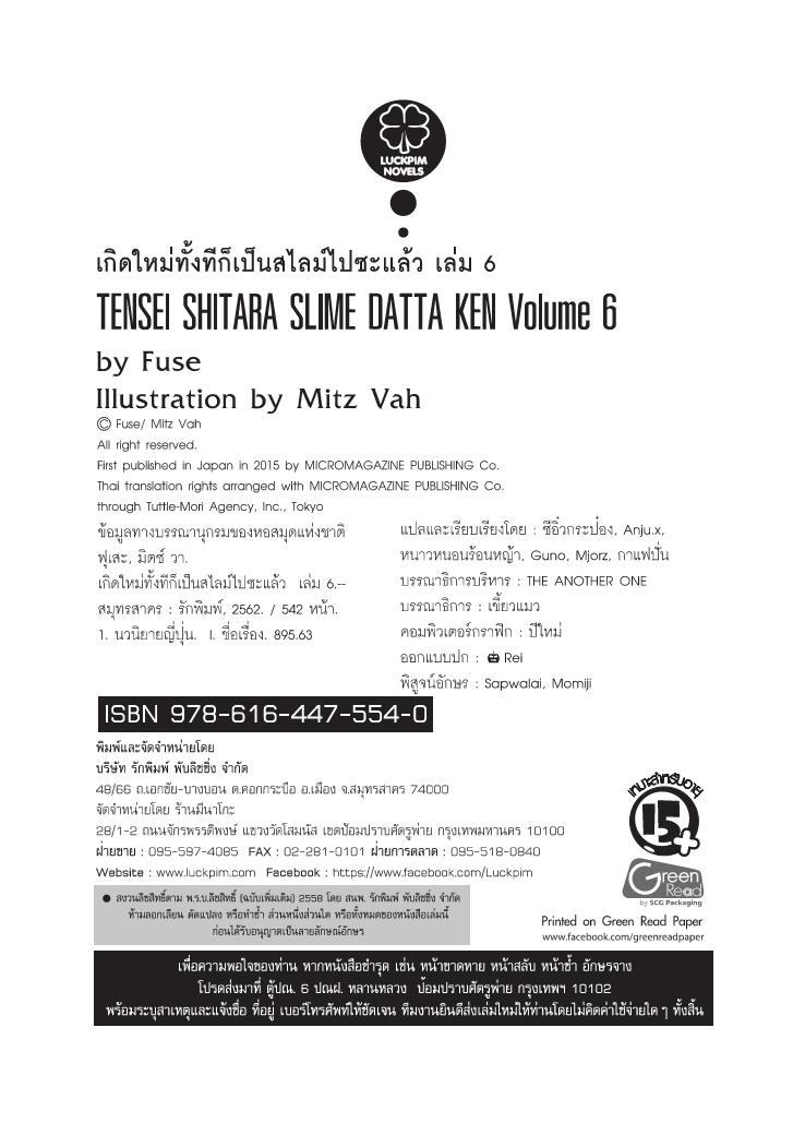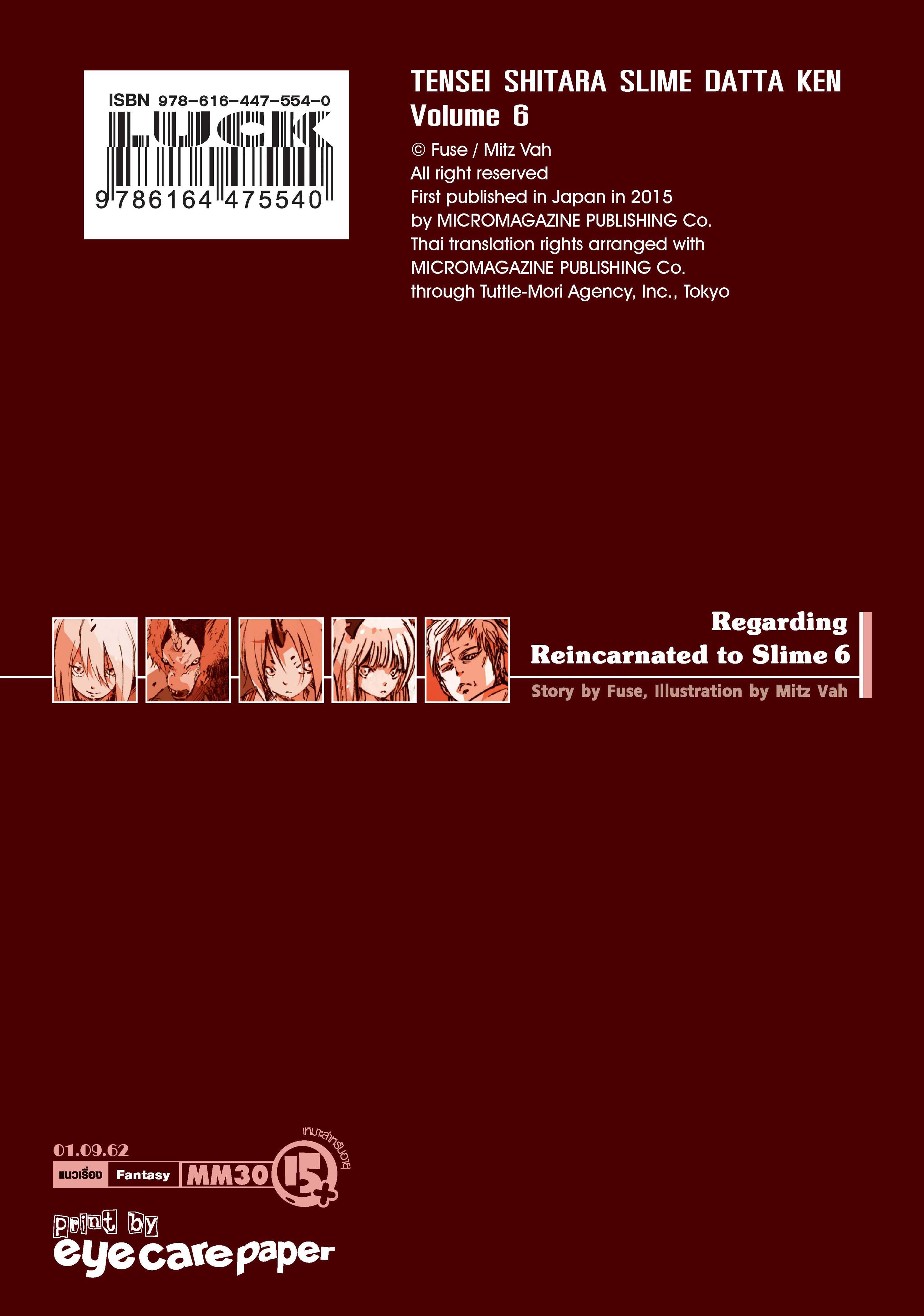 เกิดใหม่ทั้งทีก็เป็นสไลม์ไปซะแล้ว Tensei shitara Slime Datta Ke (ฉบับนิยาย) - เล่ม 6