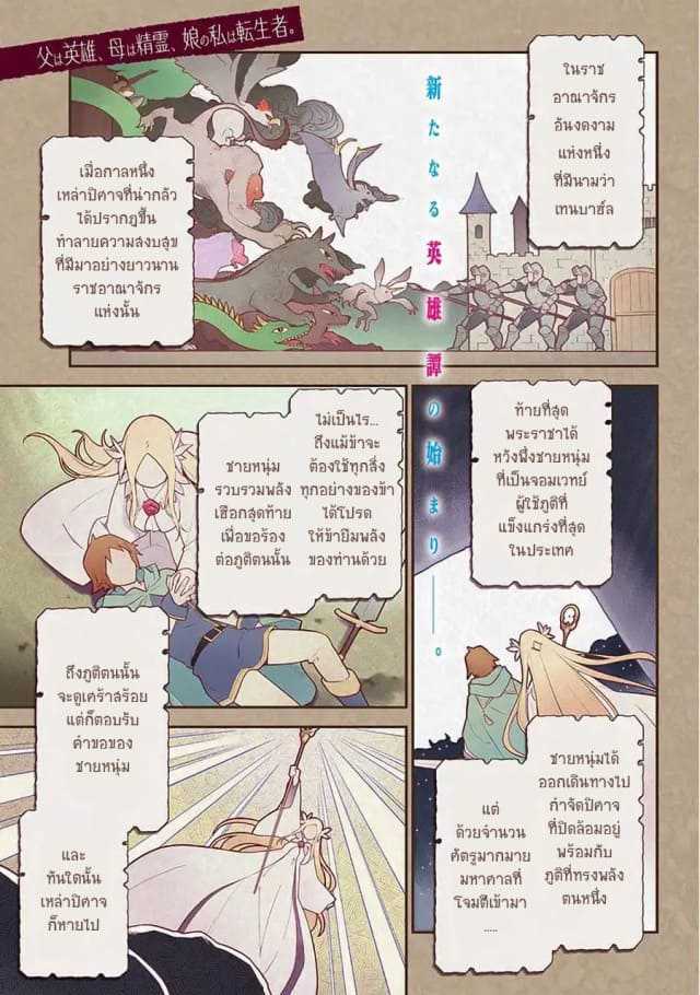 Chichi wa Eiyuu, Haha wa Seirei, Musume no Watashi wa Tenseisha - ตอนที่ 1