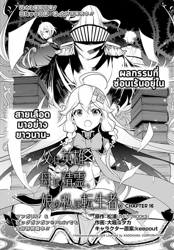 Chichi wa Eiyuu, Haha wa Seirei, Musume no Watashi wa Tenseisha - ตอนที่ 16