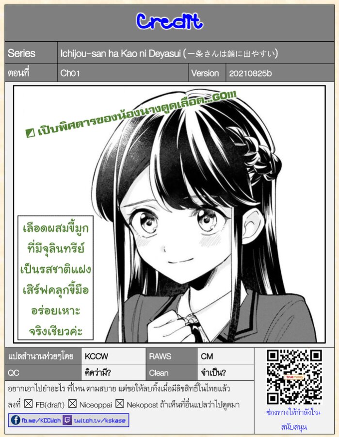 Ichijou-san ha Kao ni Deyasui! - เสบียงคุง - ตอนที่ 1