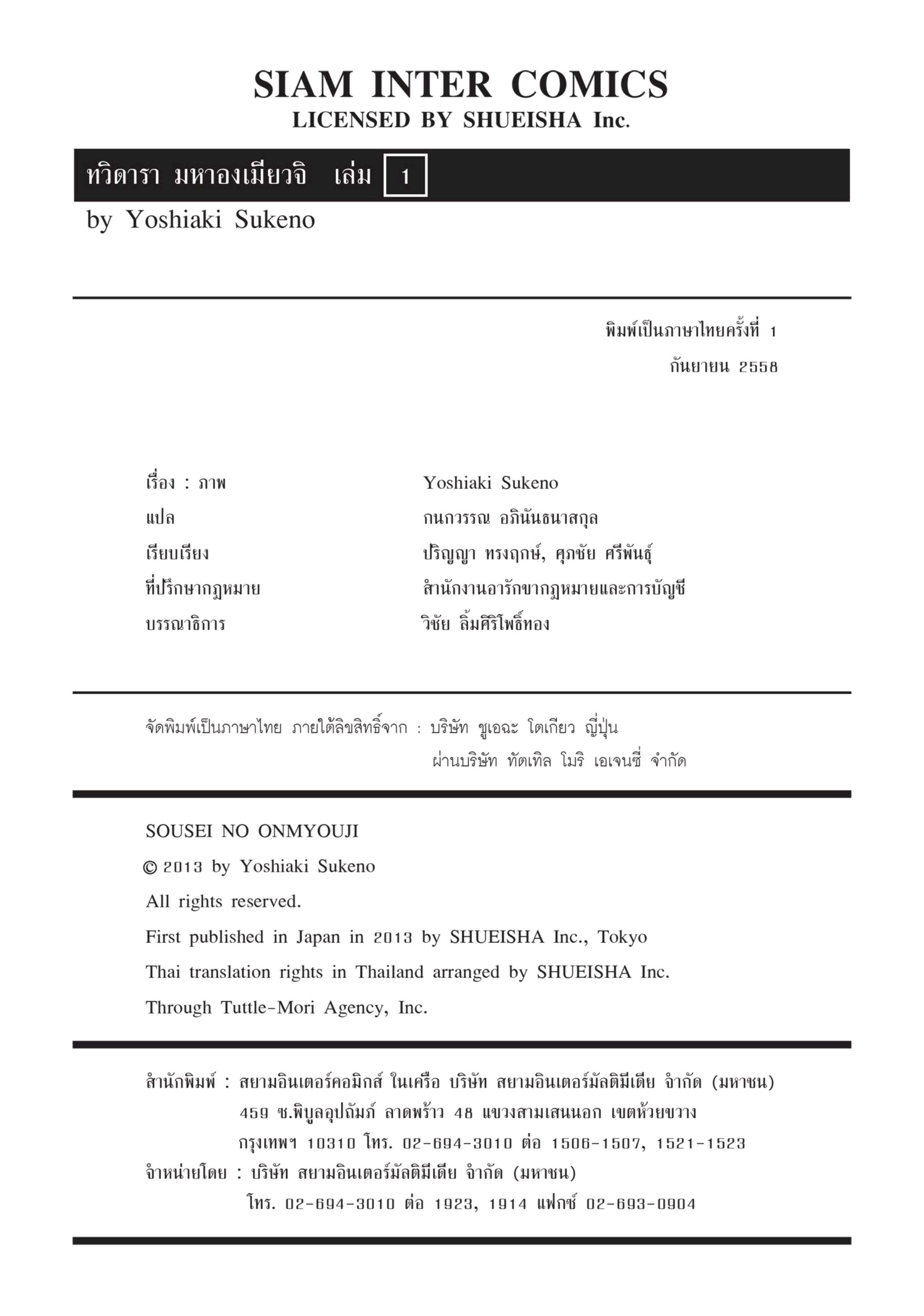 Sousei no Onmyouji ทวิดารามหาองเมียวจิ - เล่ม 1.2