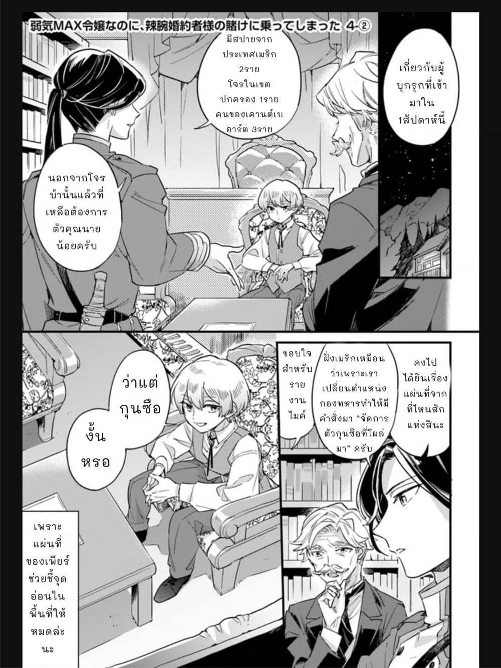 Yowaki MAX Reijou nanoni, Ratsuwan Konyakusha-sama no Kake ni Notte Shimatta - ตอนที่ 4.2